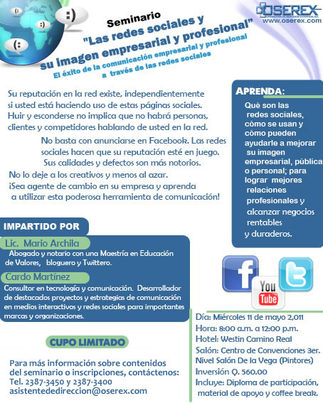 Los invitamos a participar. Una mezcla entre uso de redes sociales, creación de plataforma para promoción de imagen y servicios, estrategias de mercadeo y los valores a considerar cuando se usa una red social.