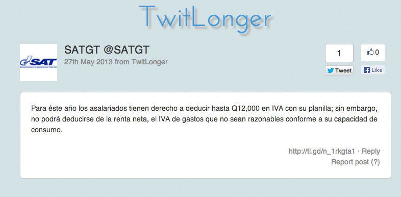 Normalmente no publico 2 entradas el mismo día… pero no me aguanto. Vea lo que SAT publica en su cuenta de Twitter: