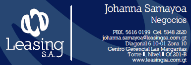 En este vídeo nos acompañan Glenda Fernández, gerente general de Leasing, S.A., y Johanna Samayoa, ejecutiva de negocios de Leasing, S.A. para hablar del Leasing y sus ventajas. Si bien la nueva ley no ha sido publicada, nos da ya la pauta de la posibilidad de hacer nuevas operaciones con esta figura.